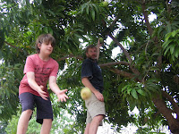 MANGO HARVEST!! We get together with the Hadfields and Nikki Alexander and pick some of the mangos down at "swim beach". Funnily named "swim beach" when there are crocs of both varieties in there. Not really a great place to swim. But a great place to harvest mangos!! Cindy checks with the council and you have permission to pick mangos off public trees!! Nikki borrows a "mango picker" which helps us get the high ones. Or you can jump on the top of your ute like Tim and grab them from there!